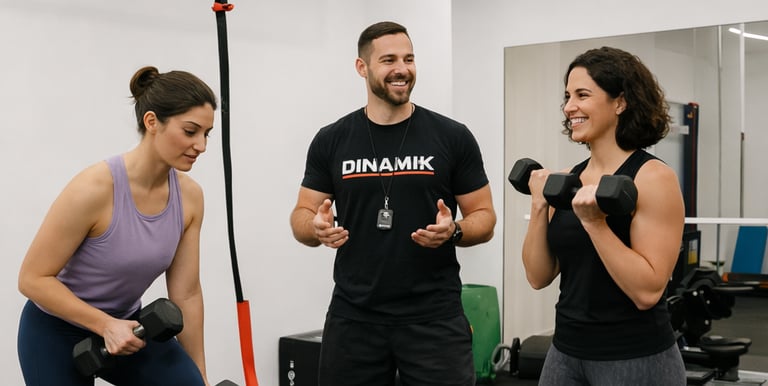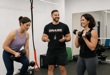 Aulas de grupo na Dinamik são sempre em trio (3 pessoas) — formato pequeno e personalizado.