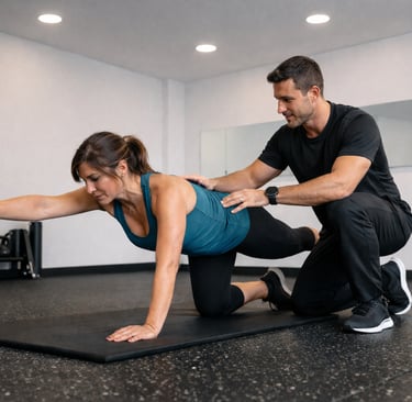 Em vez de seguir um treino genérico, o corpo aprende primeiro a movimentar-se com estabilidade e controlo, reduzindo o risco de dor e lesão.